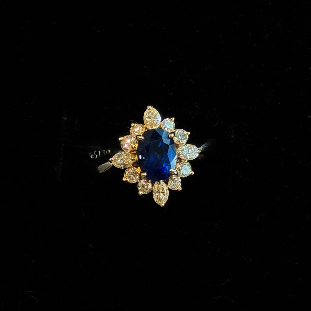 Sapphire Diamond Flower Ring in 18K & PT900 / 5.13g, GIA Madagascar S1.3ct, D0.58ct