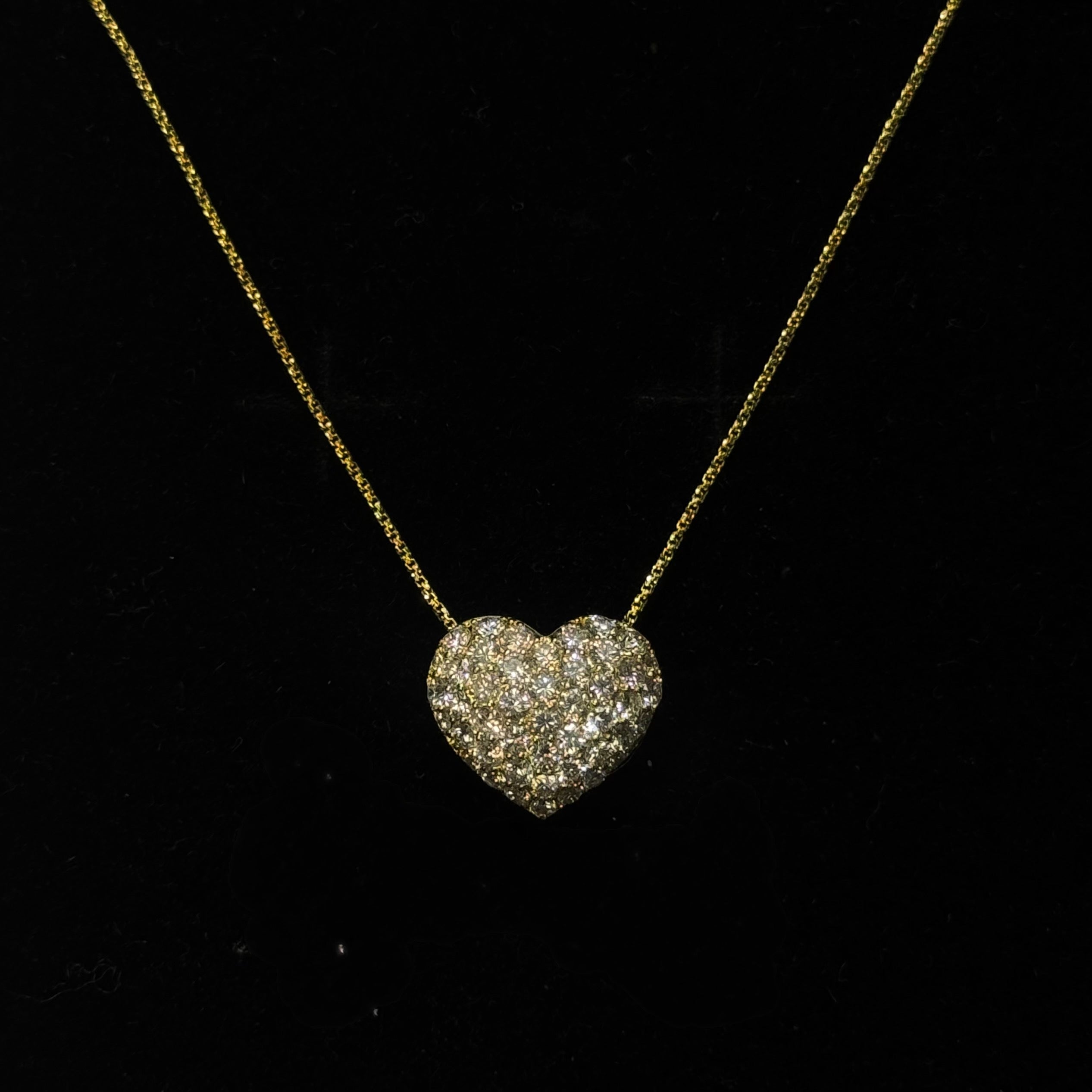 18K Puffy Pavé Heart Necklace / 4.6g, D1.30ct