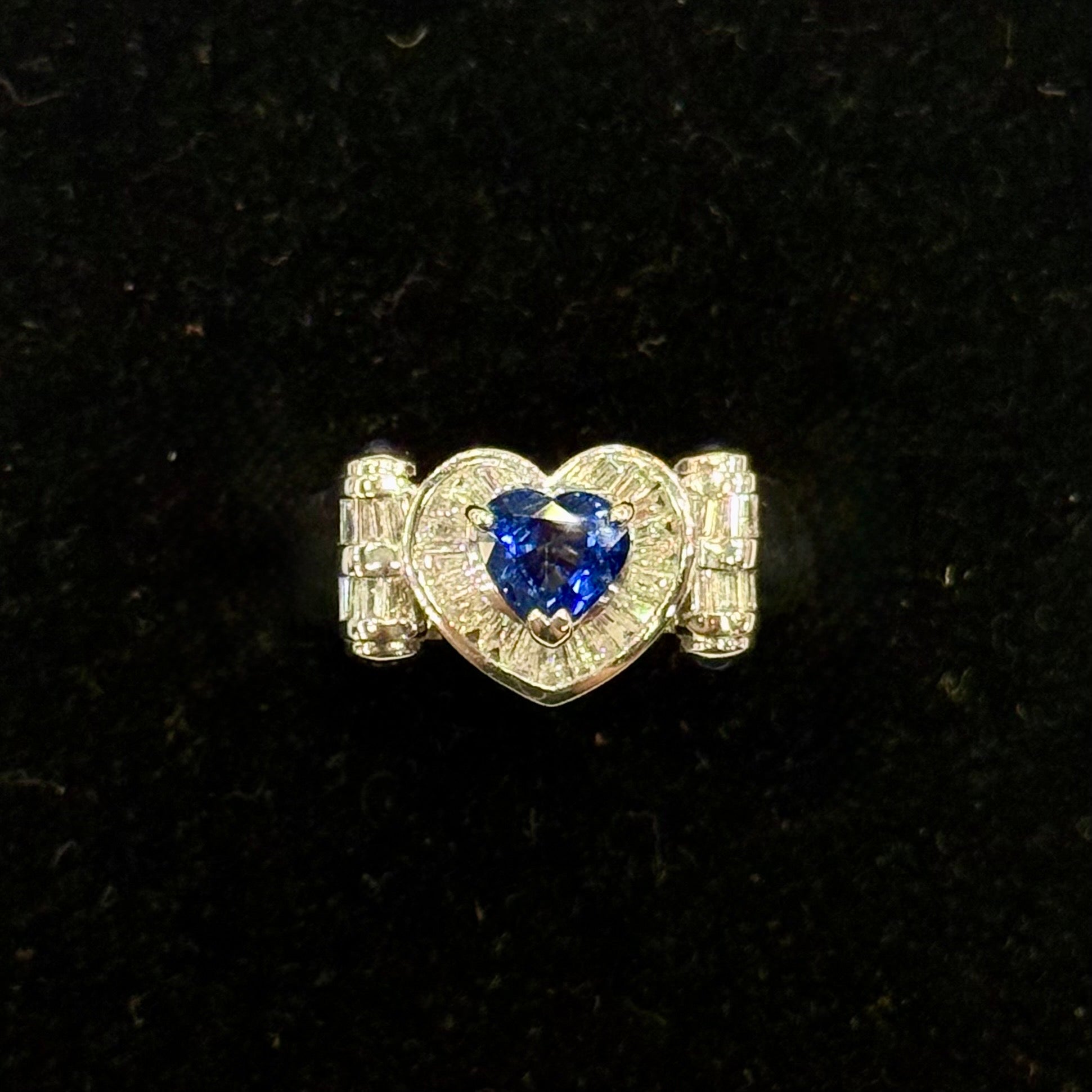 Heart Halo Sapphire Ring in PT900/ 9.8g, S 0.89ct + 0.27ct, D0.57ct