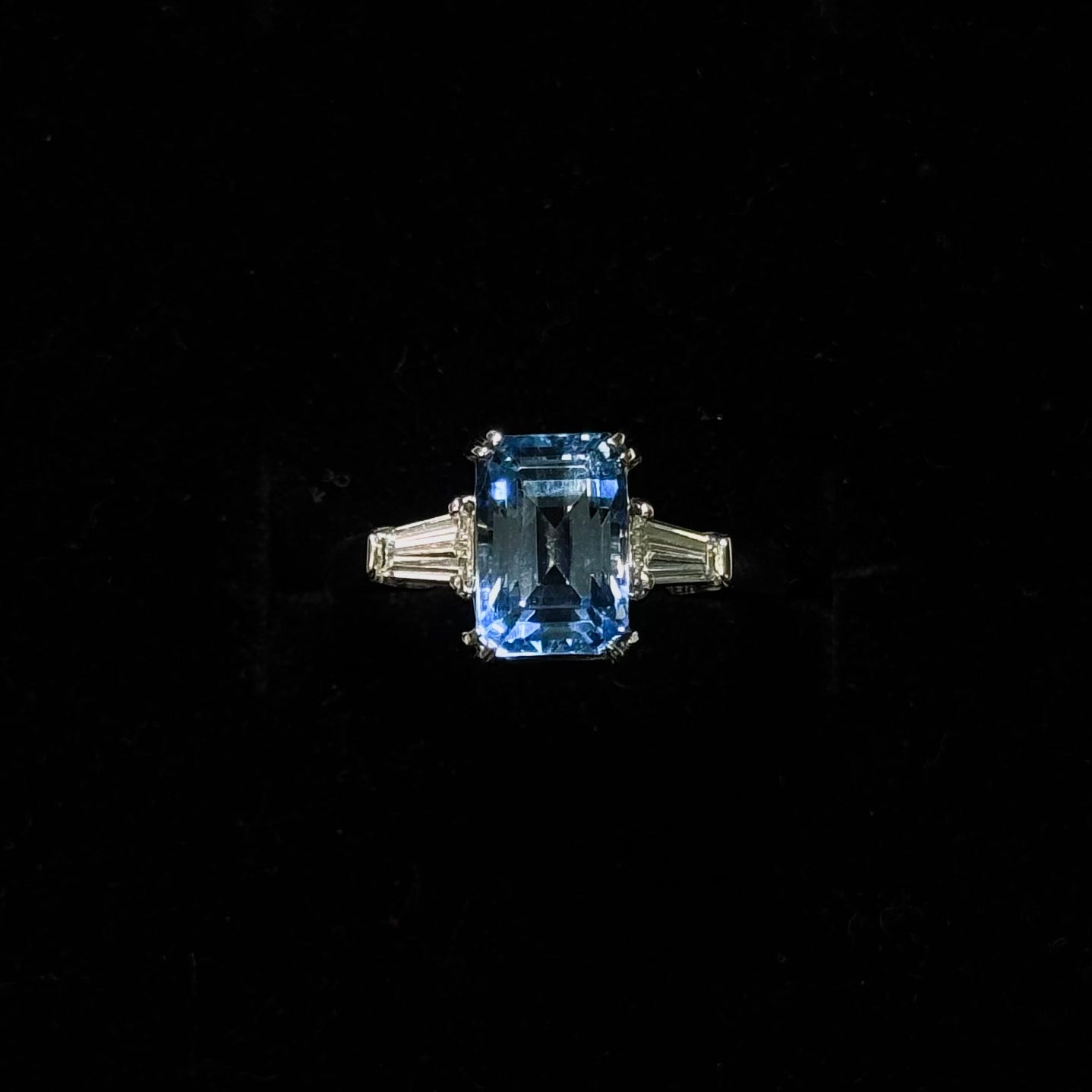 Aquamarine Baguette Side Ring in PT900 / 6.1g, AQUM2.42ct, D0.39ct