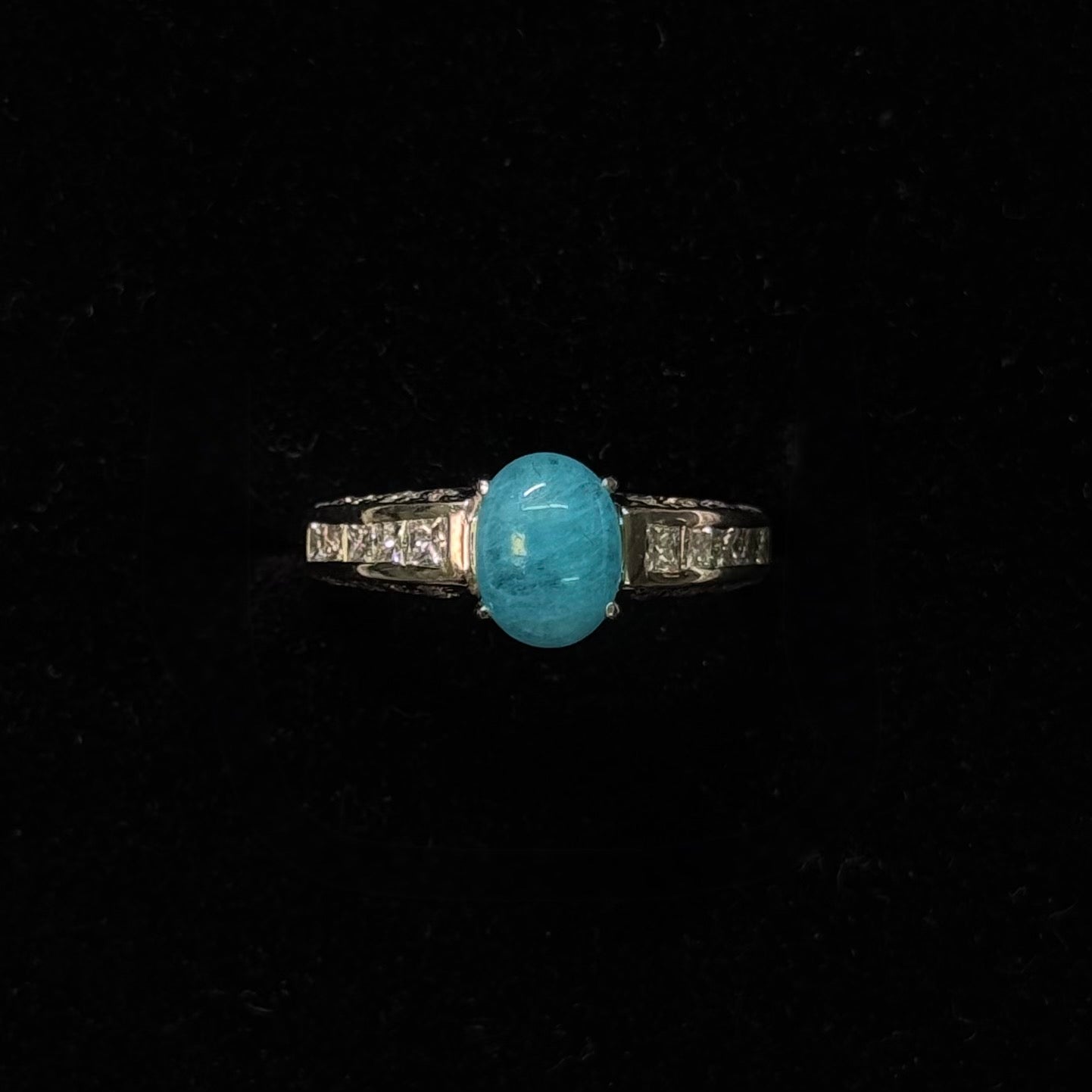 Cabochon Paraiba & Diamond Ring in PT900 / 5g, PBTCAB1.48ct, D0.56ct
